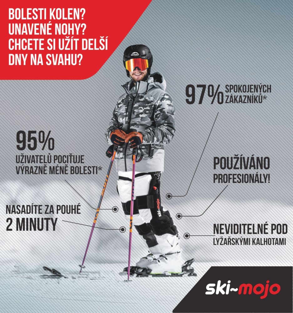 Ski~Mojo je viac ako len obyčajná kolenná ortéza pre zranených lyžiarov. Je to inovatívny exoskelet, ktorý môžu používať všetci lyžiarski nadšenci a ktorý desaťnásobne zvyšuje výkon a pôžitok z lyžovania.